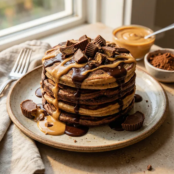 Indulge in a decadent, protein-rich breakfast that perfectly mimics the irresistible flavor of a peanut butter cup. These fluffy chocolate pancakes boast a satisfying texture that’s light and airy on the inside, with a subtly chewy exterior, complemented by a luscious swirl of creamy peanut butter that melts into every bite. Packed with approximately 28 grams of protein per serving, they provide a powerful start to your day, fueling your muscles and keeping hunger at bay longer. With a rich chocolate flavor balanced by the nutty sweetness of peanut butter, each mouthful is a delightful combination of indulgence and nourishment. Ideal for post-workout recovery or meal prepping on busy mornings, these pancakes are versatile enough to enjoy hot off the griddle or reheated later. For those with dietary restrictions, they can easily be made gluten-free using almond or oat flour, and vegan options are available by swapping in plant-based milk and peanut butter. To achieve the best texture, gently fold in the ingredients and avoid overmixing, which keeps the pancakes tender and fluffy. Drizzle with extra peanut butter or a dusting of cocoa powder for an extra treat—these pancakes are sure to satisfy your sweet tooth while supporting your active lifestyle. All nutrition data is verified using USDA FoodData Central for accuracy.